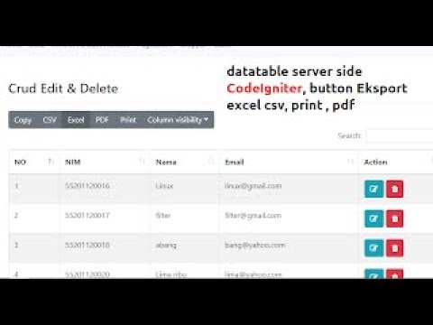Datatable server side Ajax CodeIgniter Bootstrap 4, Export data excel, pdf, print button - Tutorial Ajax Codeigniter Pdf - Demo Datatable server side Ajax CodeIgniter Bootstrap 4, Export data excel, pdf, print button Tutorial & download ...